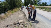 Cegah Laka, Polisi Pasang Warning Line di Titik Longsor di Poros Kelay–Samarinda