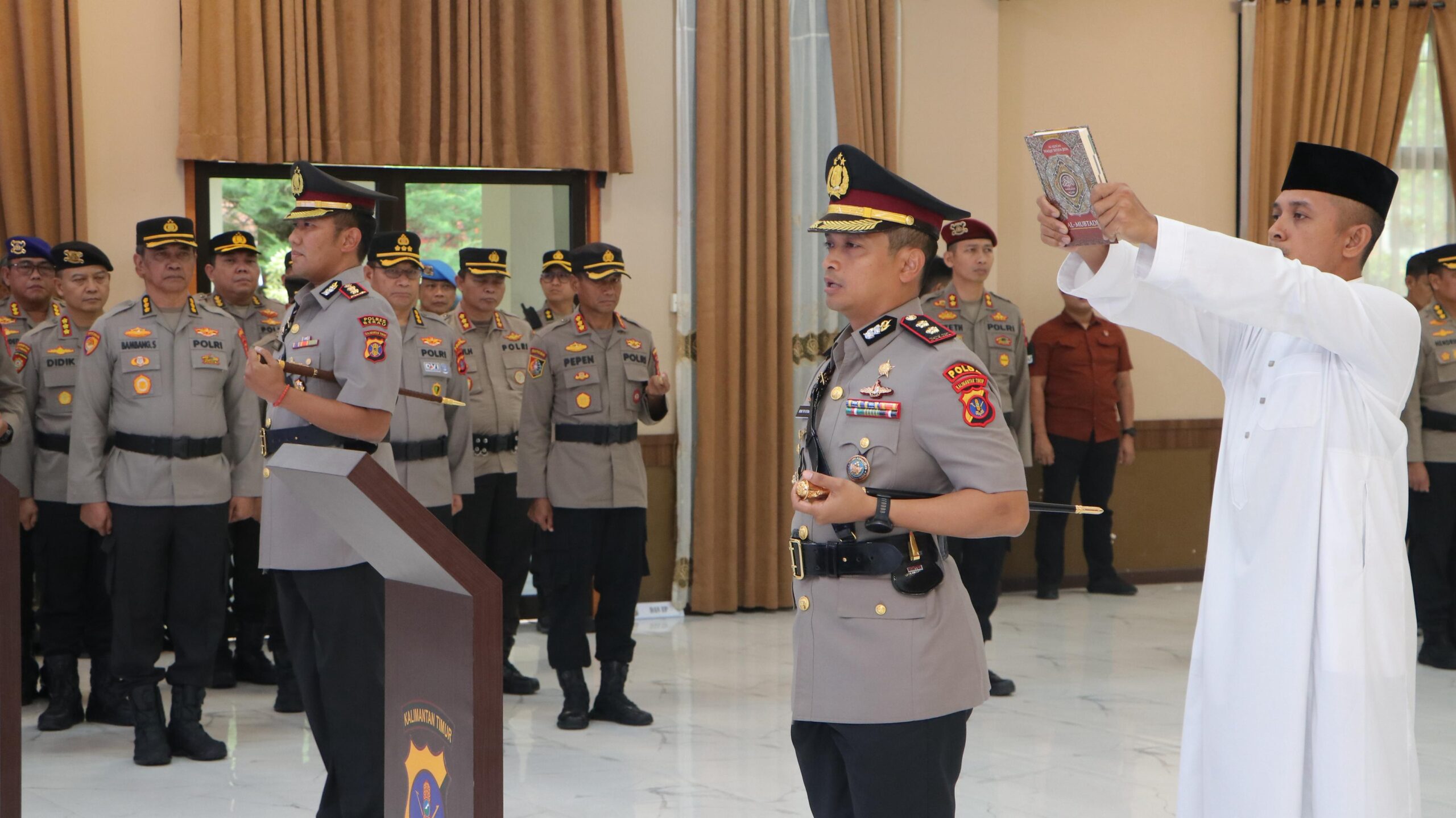 Sertijab tersebut dipimpin langsung oleh Kapolda Kaltim Irjen Pol Endar Priantoro. Dalam kesempatan itu, Kapolres Berau AKBP Khairul Basyar, S.I.K., S.H., M.H., resmi mengemban tugas baru sebagai Kapolres Kutai Kartanegara menggantikan AKBP Dody Surya Putro, S.I.K., S.H., M.H. Sementara tongkat komando Kapolres Berau diserahkan kepada AKBP Ridho Tri Putranto, S.H., S.I.K., M.Si. yang sebelumnya menjabat Kasubditgakkum Ditpolairud Polda Kaltim.