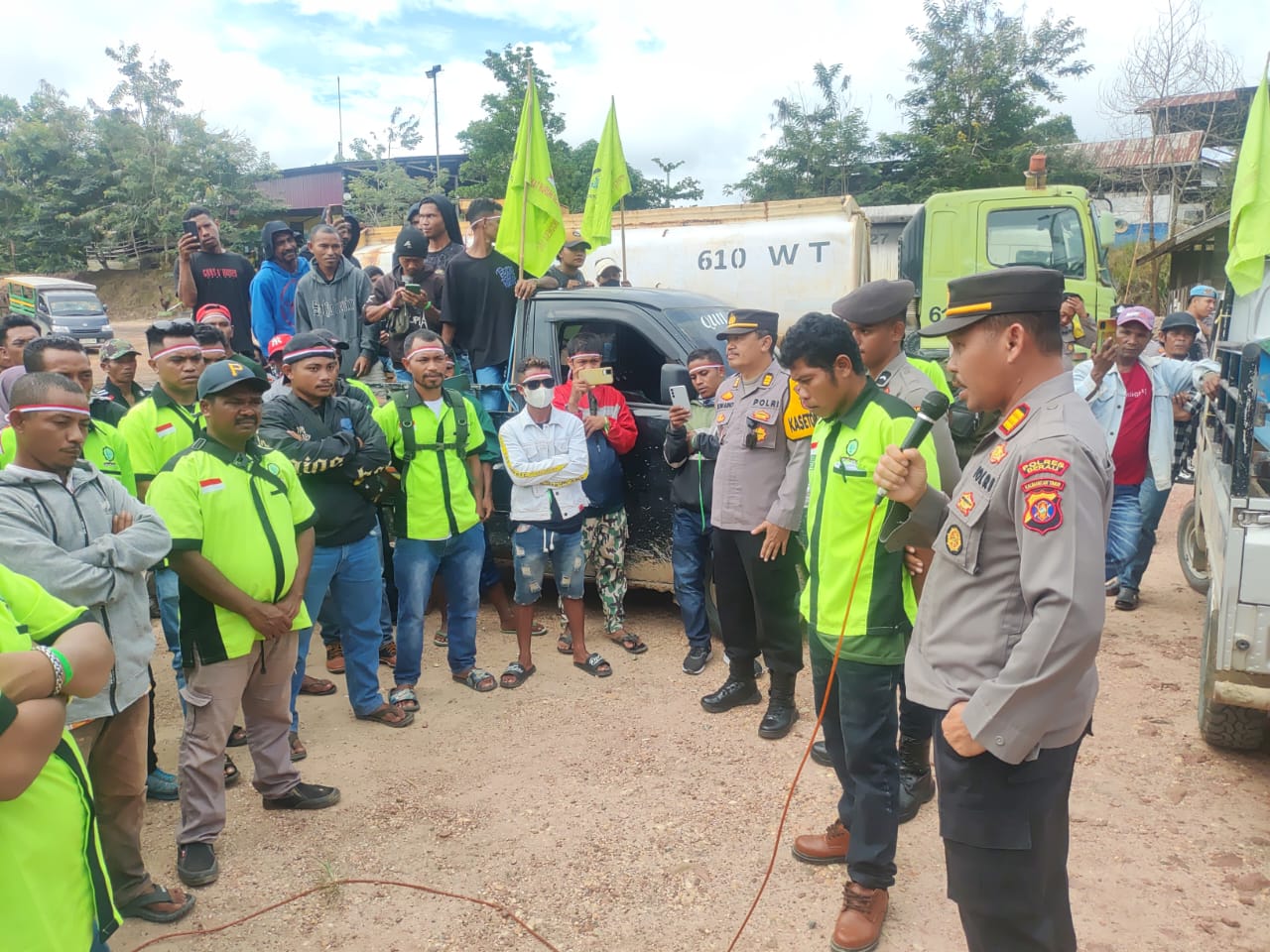 Teluk Bayur – Personel Polres Berau bersama Polsek Teluk Bayur melaksanakan pengamanan aksi damai yang digelar oleh Serikat Buruh Sejahtera Indonesia (SBSI) 1992 di Office PT. Lantana Multi Mineral (LMM) dan Jalan Holing PT. LMM, Kampung Labanan Jaya, Kecamatan Teluk Bayur, Minggu (23/2/2025).