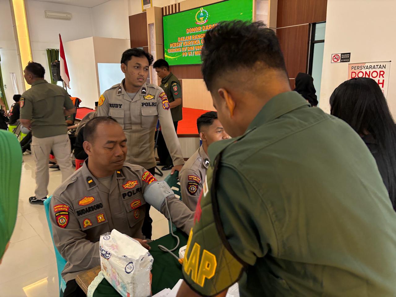 Acara berlangsung dengan khidmat dan lancar, dimulai dengan pembukaan, pembacaan doa, dan pemberian arahan mengenai proses donor darah. Tidak hanya dihadiri oleh anggota TNI dan Polri, kegiatan ini juga melibatkan ibu-ibu Bhayangkari, Saptol PP, anggota Komcad Kodim 0902/Bru, hingga perwakilan siswa sekolah dan organisasi masyarakat seperti PSHT.