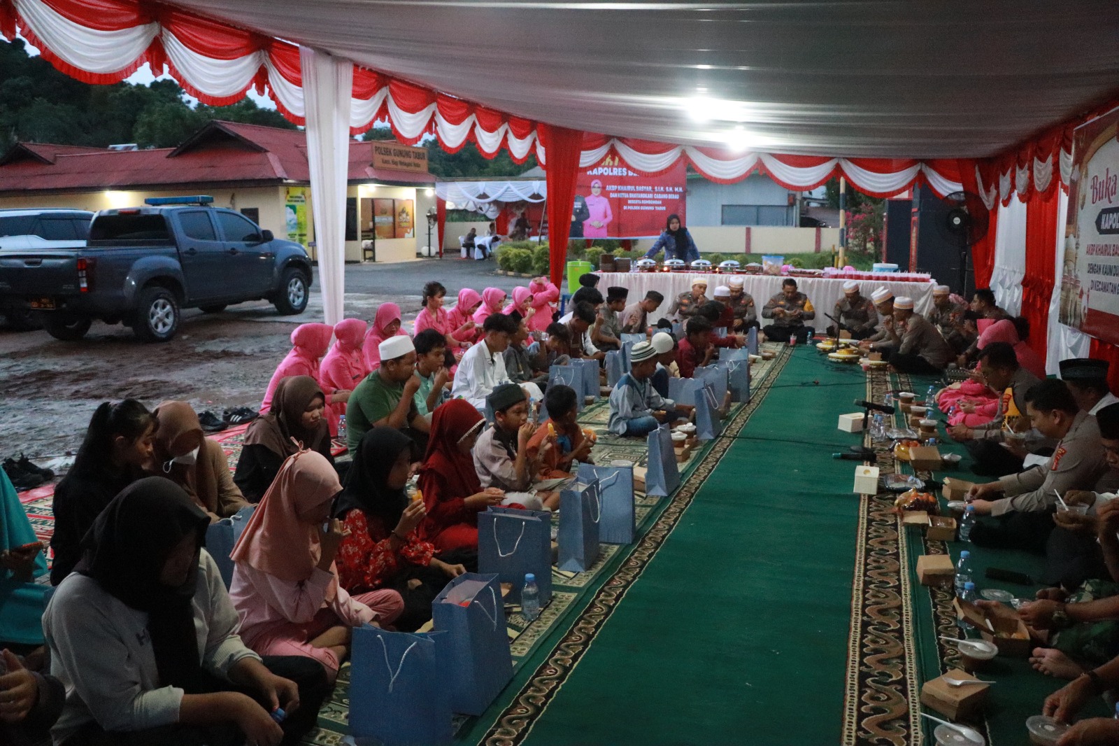 “Kehadiran kami di sini tidak hanya dalam rangka tugas, tetapi juga untuk berbagi kebahagiaan di bulan suci Ramadhan ini,” ucap AKBP Khairul Basyar.
