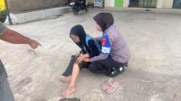 Anggota Sipropam Polres Berau Bantu Pengendara Motor Terjatuh di Sei Bedungun