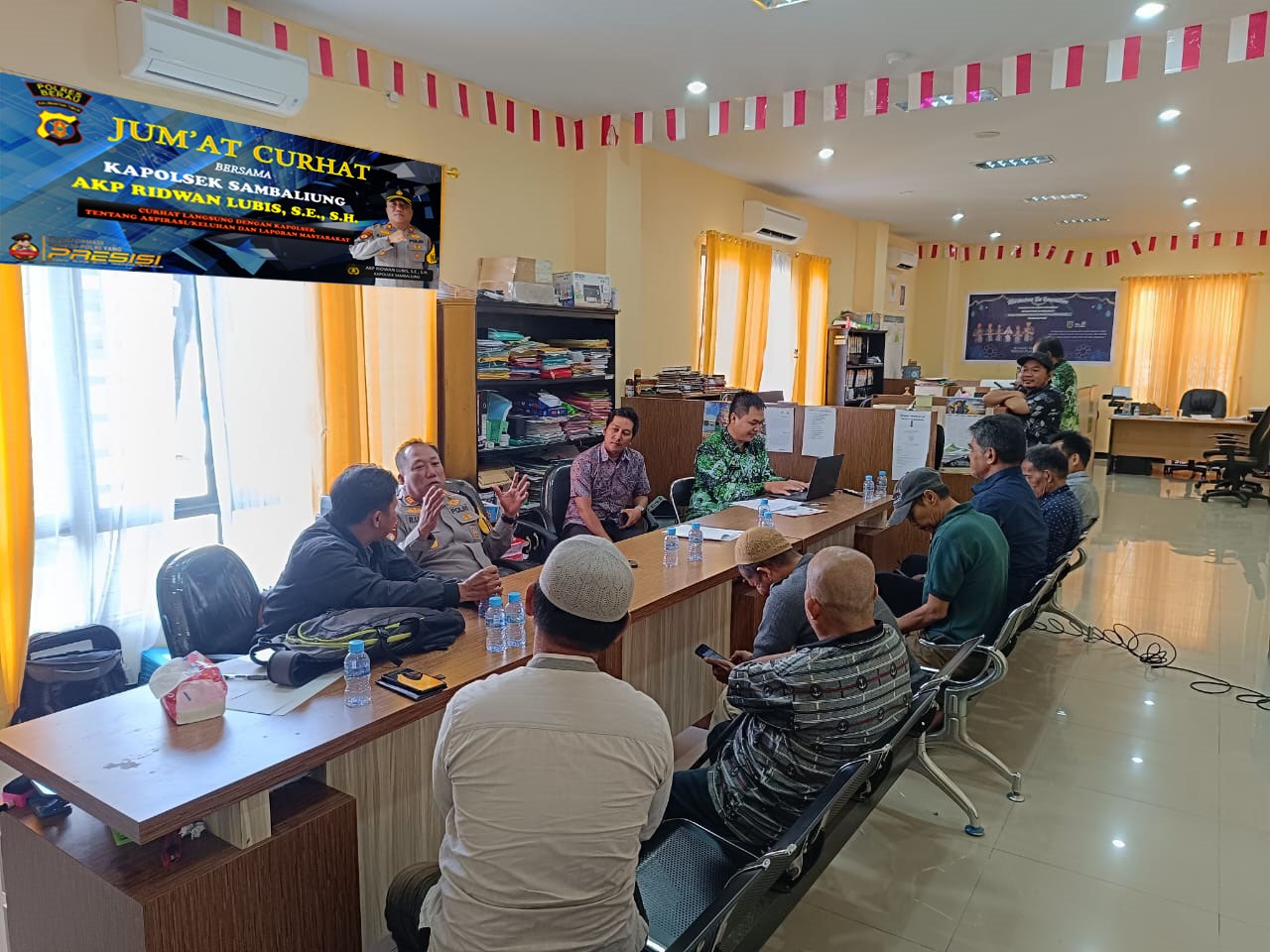 Polres Berau – Pada hari Jumat, 17 Oktober 2025 pukul 10.30 Wita bertempat di Kantor Kecamatan Sambaliung, Kabupaten Berau, telah dilaksanakan kegiatan Jumat Curhat bersama Kapolsek Sambaliung AKP Ridwan Lubis, S.E., S.H. Kegiatan ini dihadiri sekitar 30 peserta yang terdiri dari anggota Kelurahan Sambaliung dan masyarakat sekitar. Tujuan kegiatan ini adalah untuk menampung aspirasi, keluhan, serta memberikan edukasi hukum kepada masyarakat terkait tindak pidana pencurian yang marak dibicarakan belakangan ini.