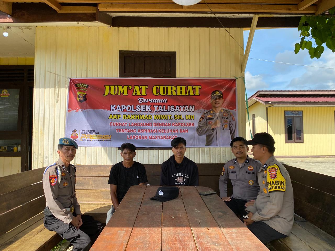 Kegiatan Jumat Curhat ini menjadi wadah penting bagi masyarakat Talisayan untuk menyampaikan langsung aspirasi dan keluhannya kepada pihak kepolisian. Dengan komunikasi yang terbuka, diharapkan tercipta situasi kamtibmas yang aman, nyaman, dan kondusif di wilayah Kecamatan Talisayan.