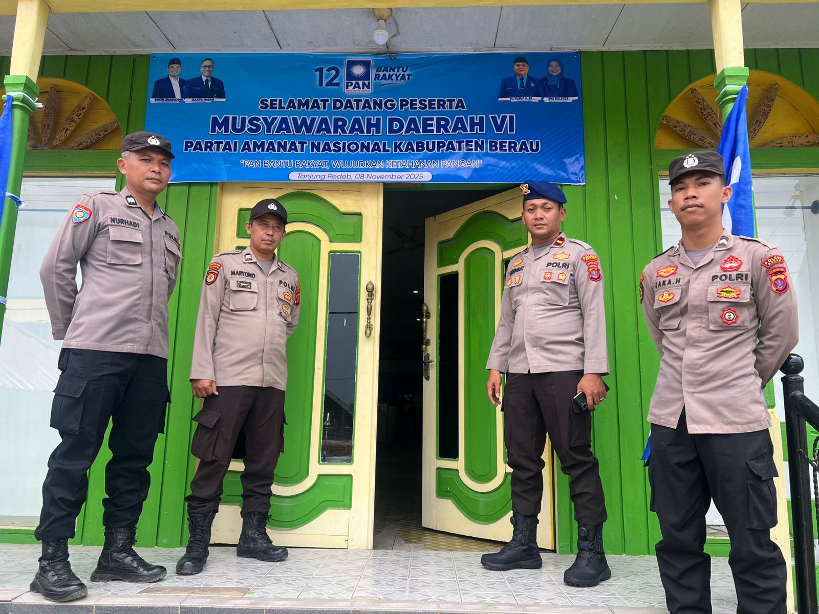 Tanjung Redeb, 8 November 2025 – Polres Berau melaksanakan pengamanan kegiatan Musyawarah Daerah (Musda) VI Dewan Pimpinan Daerah (DPD) Partai Amanat Nasional (PAN) Kabupaten Berau Tahun 2025, yang digelar di Aula Hotel Herlina, Jalan R.A. Kartini, Kecamatan Tanjung Redeb, Sabtu (8/11/2025).