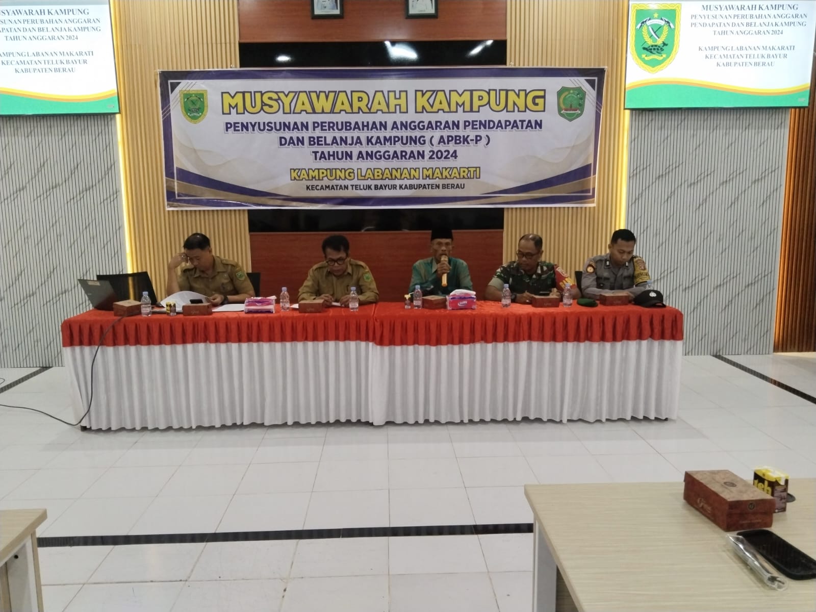 Bertempat di Balai Kampung Labanan Makarti, Jalan Dr. Sutomo RT 01 Kampung Labanan Makarti, Kecamatan Teluk Bayur, Kabupaten Berau, dilaksanakan kegiatan Musyawarah Kampung terkait penyusunan Perubahan Anggaran Pendapatan dan Belanja Kampung (APBK-P) Tahun Anggaran 2024. Musyawarah ini merupakan langkah penting dalam pengelolaan keuangan kampung demi mewujudkan transparansi dan akuntabilitas di tingkat pemerintahan kampung.