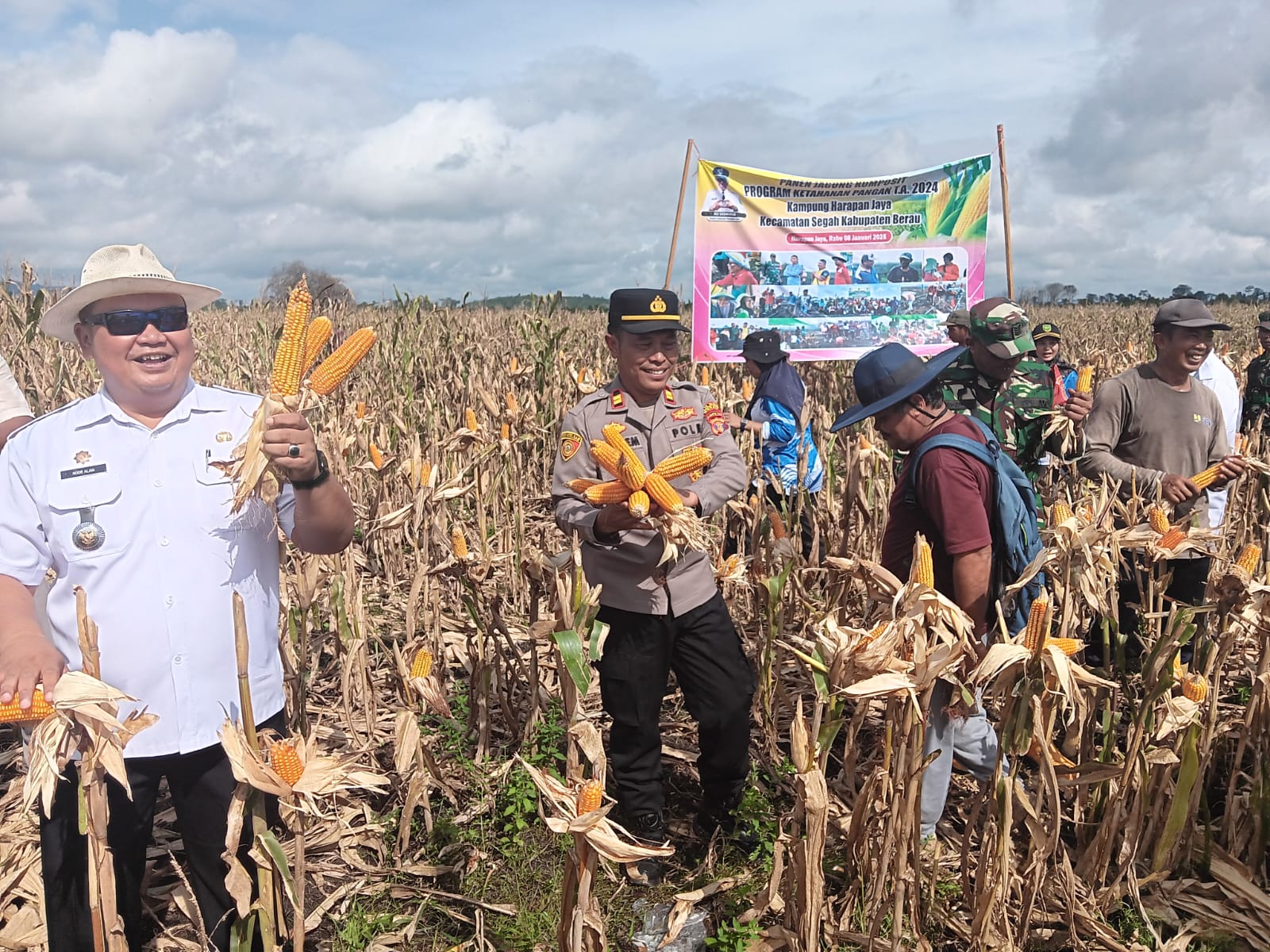Kegiatan diawali dengan pembukaan, dilanjutkan pembacaan doa, serta sambutan dari berbagai pihak, antara lain Kepala Kampung Harapan Jaya Ali Sasmirul, Camat Segah Noor Alam, S.STP., Kapolsek Segah Iptu Lisinius Pinem, SH., dan Danramil Segah yang diwakili oleh Serma Heri Galose. Setelah sambutan, dilaksanakan panen jagung perdana secara simbolis yang diikuti dengan sesi foto bersama sebagai bentuk kebersamaan dalam mendukung ketahanan pangan.