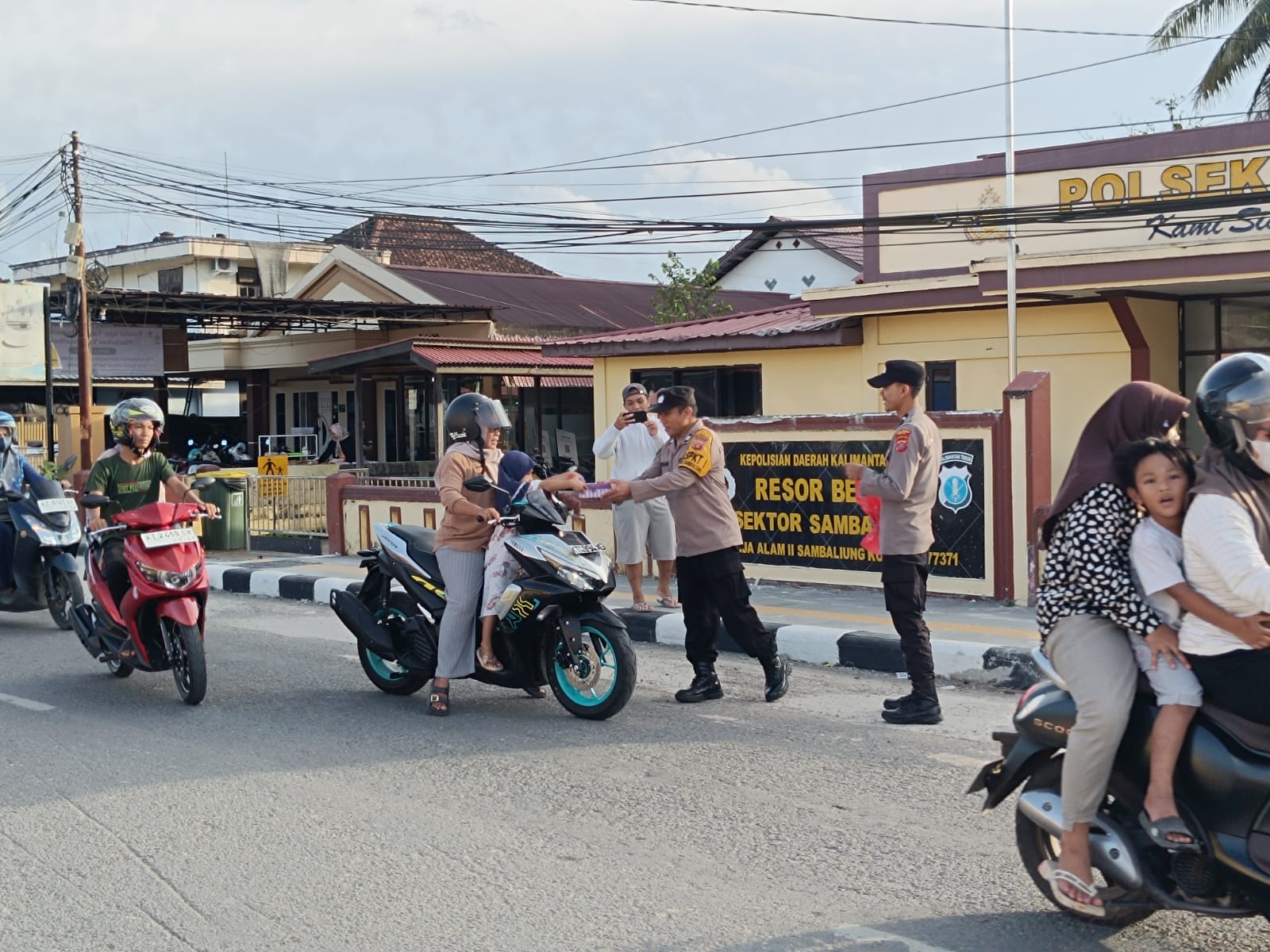 Personel Polsek Sambaliung juga memberikan himbauan kepada masyarakat agar tetap menjaga kesehatan selama menjalankan ibadah puasa. Masyarakat yang menerima takjil tampak antusias dan mengapresiasi langkah kepolisian dalam berbagi kebaikan di bulan yang penuh berkah ini.