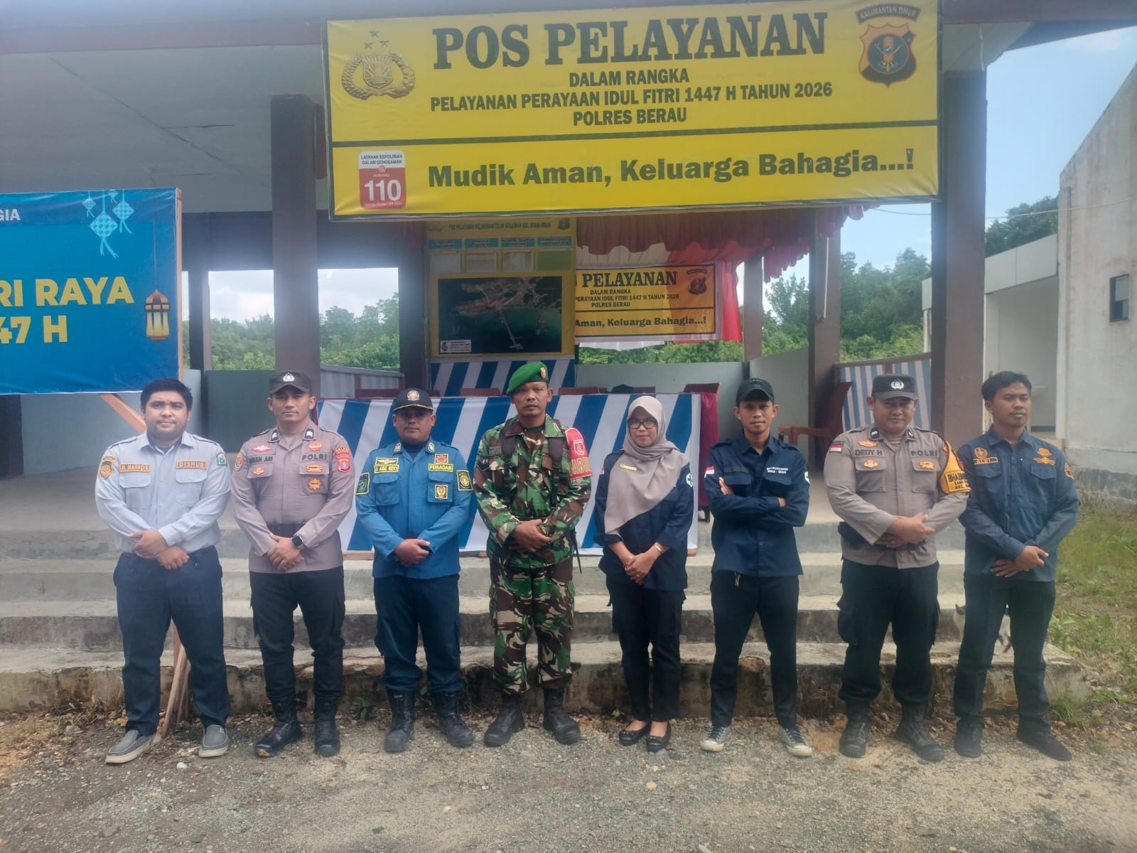 Biduk-Biduk – Dalam rangka pengamanan perayaan Idul Fitri 1447 Hijriah tahun 2026, Polsek Biduk-Biduk bersama instansi terkait melaksanakan kegiatan pengamanan Pos Pelayanan di kawasan Pelabuhan Dermaga Teluk Sulaiman, Kecamatan Biduk-Biduk, Kabupaten Berau.