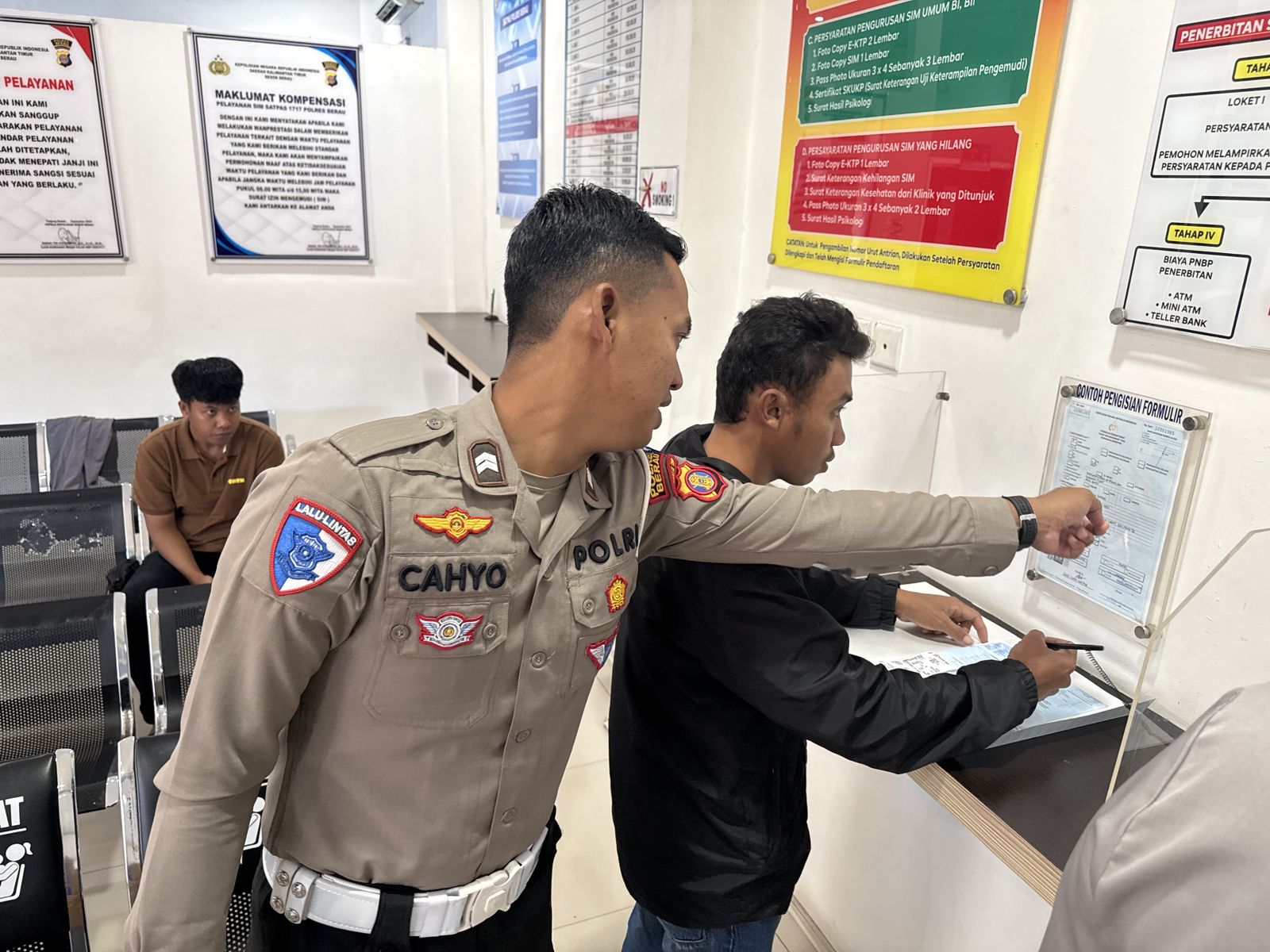 Dalam rangka meningkatkan pemahaman masyarakat terkait prosedur penerbitan Surat Izin Mengemudi (SIM), personel Polisi Lalu Lintas (Polantas) Polres Berau melaksanakan kegiatan “Polantas Menyapa” dengan memberikan sosialisasi langsung mengenai mekanisme pelayanan SIM yang transparan dan profesional.
