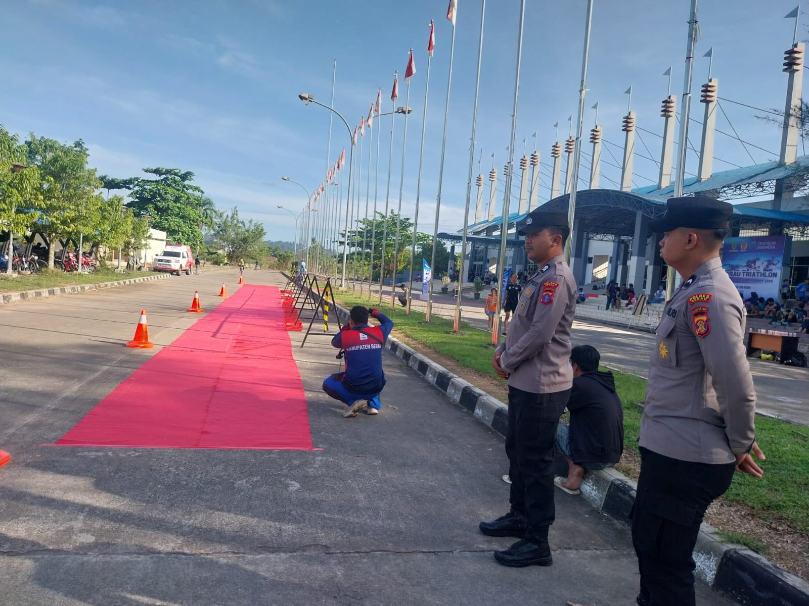 Berau, 8 November 2025 – Jajaran Polres Berau melaksanakan pengamanan lanjutan kegiatan Berau Triathlon Antar Pelajar Tahun 2025 yang digelar di area Kolam Renang Kakaban Aquatik, Jalan Gatot Subroto, Kelurahan Bedungun, Kecamatan Tanjung Redeb, Sabtu (8/11/2025).