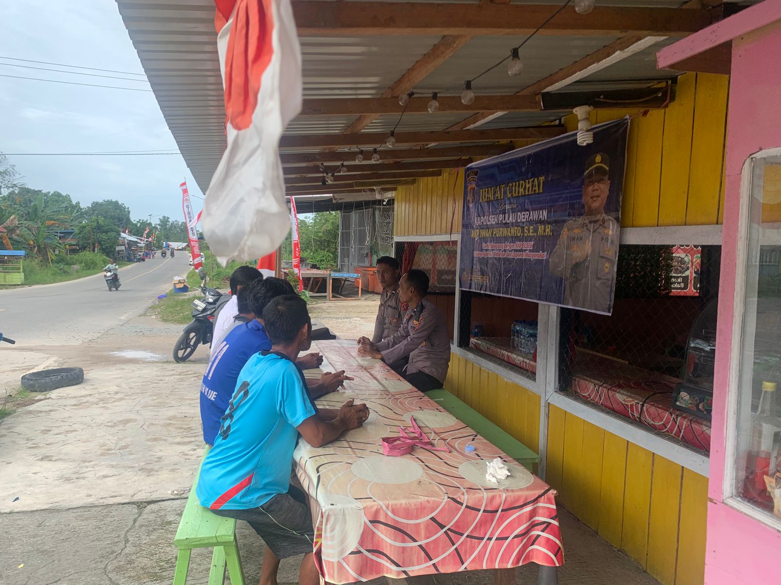 Polsek Pulau Derawan kembali menggelar kegiatan Jumat Curhat yang berlangsung di Halaman Kios warga, Jl. Pembangunan RT. 013 Kampung Tanjung Batu, Kecamatan Pulau Derawan, Kabupaten Berau. Kegiatan yang rutin dilaksanakan setiap pekan ini bertujuan untuk mempererat silaturahmi sekaligus menampung aspirasi dan keluhan masyarakat.