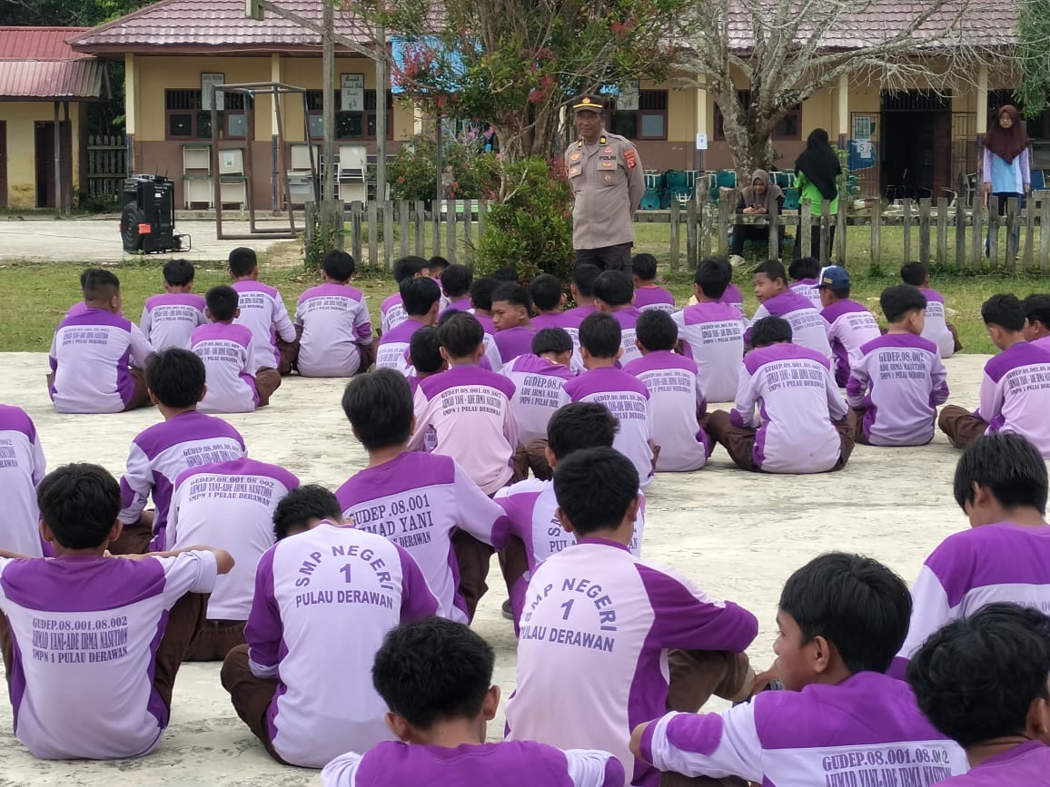 Dalam upaya menciptakan lingkungan sekolah yang aman, sehat, dan sadar hukum, Polsek Pulau Derawan melaksanakan kegiatan sosialisasi tentang bahaya narkoba, tata tertib berlalu lintas, dan pencegahan bullying kepada siswa-siswi SMP Negeri 1 Pulau Derawan. Kegiatan ini dilaksanakan pada hari Jumat, 18 Juli 2025, mulai pukul 07.30 WITA di lapangan upacara SMPN 1 Pulau Derawan, Jl. Raya Kabupaten RT.007, Kampung Tanjung Batu, Kecamatan Pulau Derawan, Kabupaten Berau.