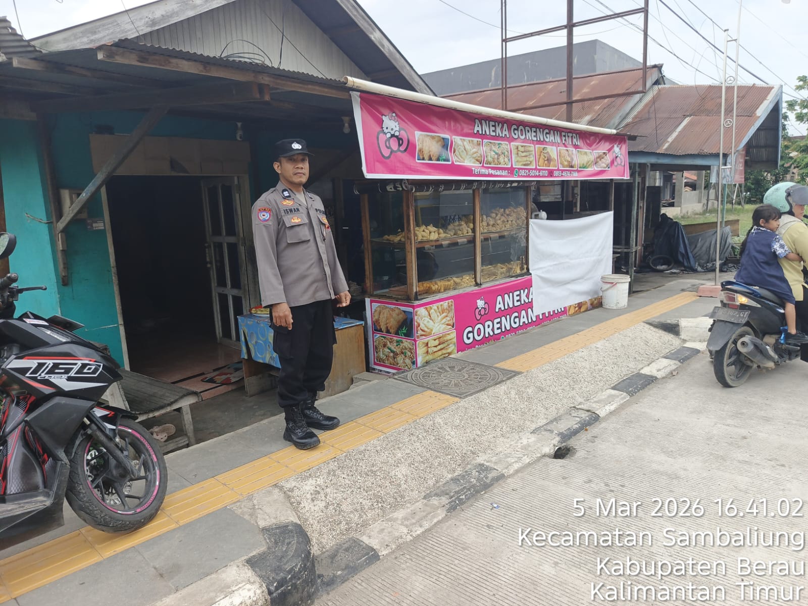 Sambaliung – Personel Polsek Sambaliung melaksanakan kegiatan patroli dan pengamanan menjelang waktu berbuka puasa di wilayah hukum Polsek Sambaliung, Kamis (5/3/2026) sore.