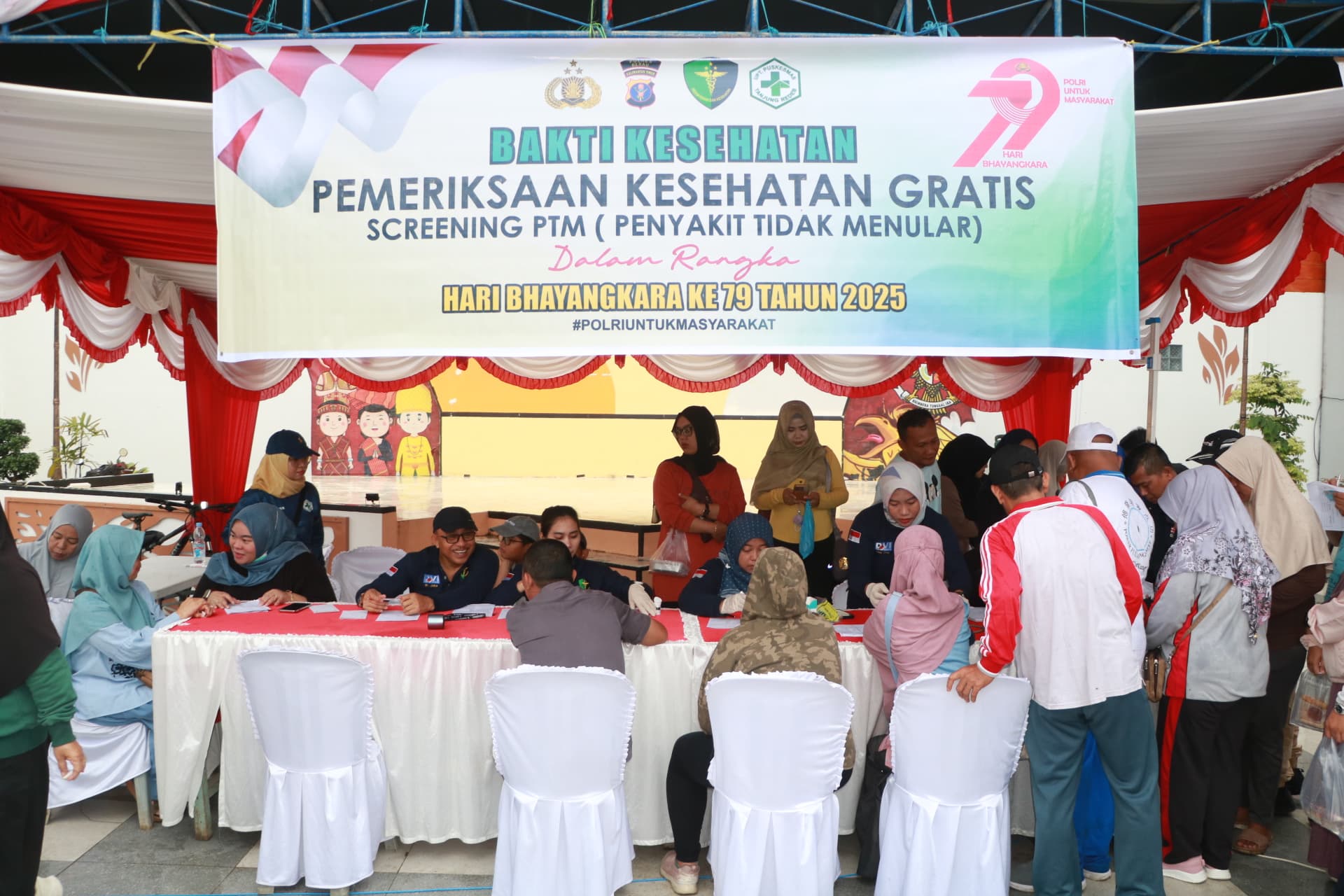 Kegiatan dimulai sejak pukul 06.00 WITA dan melibatkan personel dari berbagai satuan fungsi, termasuk petugas kesehatan dari Dokkes Polres Berau, serta pelayanan dari SKCK, Samsat, dan pelayanan perpanjangan SIM keliling. Masyarakat yang hadir terlihat antusias memanfaatkan berbagai fasilitas yang tersedia, terutama layanan pemeriksaan kesehatan gratis berupa screening Penyakit Tidak Menular (PTM) seperti tekanan darah tinggi dan diabetes.