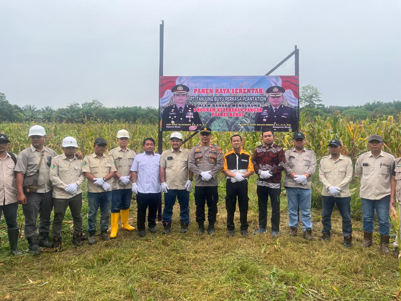 Talisayan, Berau — Polsek Talisayan menghadiri sekaligus melaksanakan pengamanan kegiatan Panen Raya Serentak dalam rangka Mendukung Ketahanan Pangan Nasional yang diselenggarakan oleh PT. Tanjung Buyu Perkasa (TBP) pada Kamis, 4 Desember 2025, bertempat di Areal HGU PT TBP Kampung Capuak, Kecamatan Talisayan, Kabupaten Berau. Kegiatan dimulai pada pukul 09.00 WITA hingga 10.30 WITA dan berlangsung dengan aman serta kondusif.