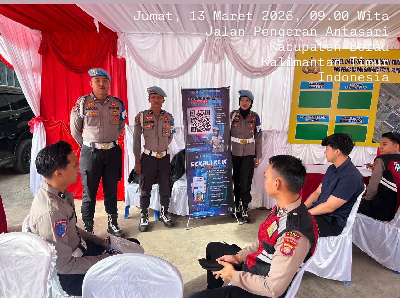 Polres Berau – Seksi Profesi dan Pengamanan (Sipropam) Polres Berau melaksanakan kegiatan sosialisasi Layanan Dumas Online Propam Polri di sejumlah lokasi pelayanan publik dalam rangka Operasi Kepolisian Ketupat Mahakam 2026. Kegiatan tersebut dilaksanakan pada Jumat (13/3/2026) mulai pukul 09.00 WITA hingga selesai.