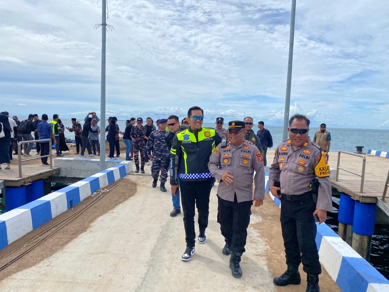 Polres Berau – Kapolres Berau, AKBP Khairul Basyar, bersama rombongan Sunmori Kamtibmas tiba di Pelabuhan Pulau Derawan, Minggu (29/12/2024), pukul 14.00 WITA. Kunjungan ini merupakan bagian dari Operasi Lilin Mahakam 2024 untuk pengecekan Pos Pelayanan Natal dan Tahun Baru (Nataru) serta penyerahan bantuan sosial.